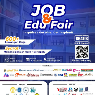 Halo Sahabat SMK, Bapak/Ibu, Siswa, & Alumni βΊοΈDengan bangga SMK Negeri 69 Jakarta mengundang Seluruh Peserta dan Alumni SMKN 69